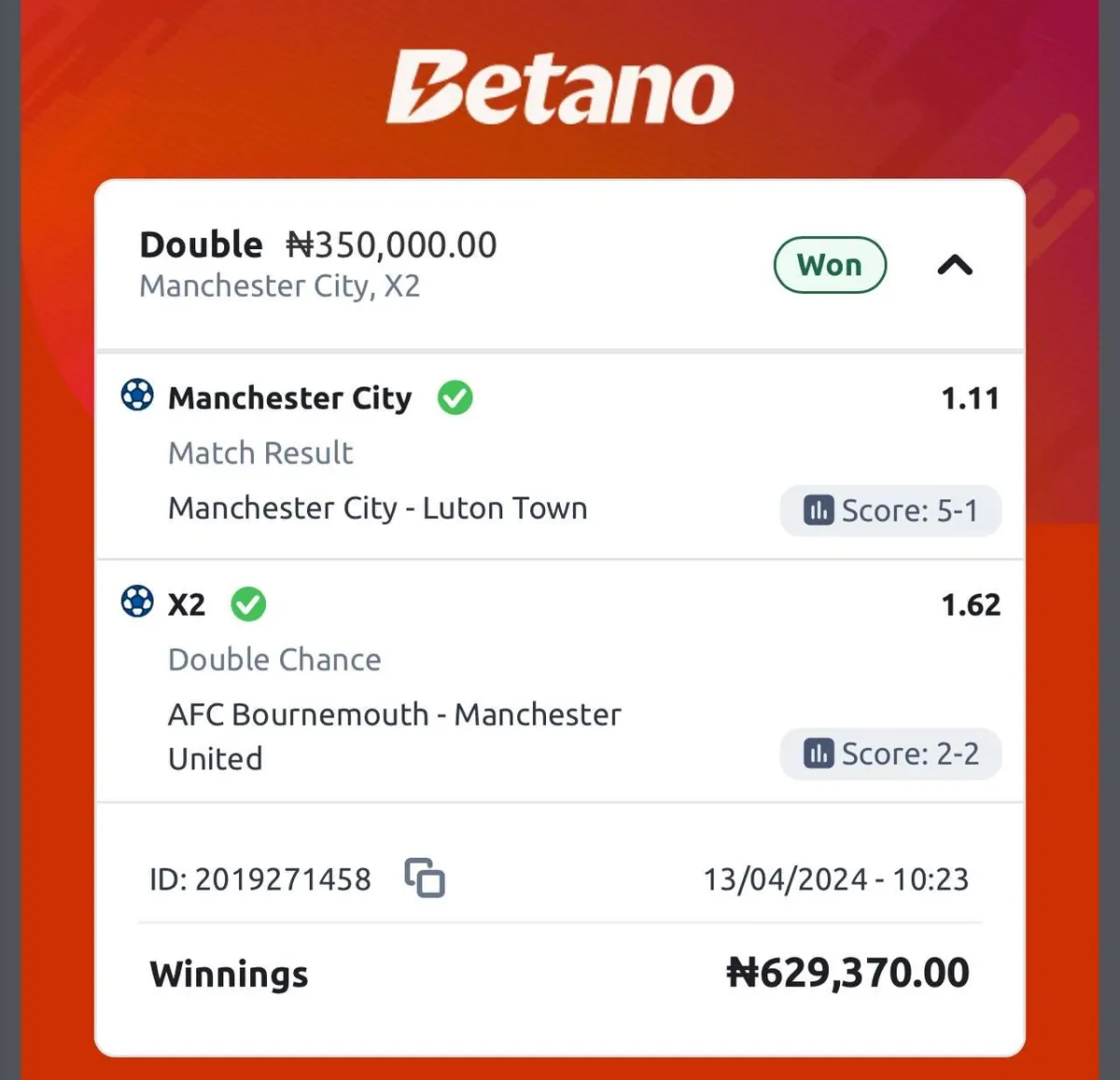 I am that CONFIDENT in my banker 2 odds. All you need do is send your crypto wallet to me and I will credit you within 35 minutes.