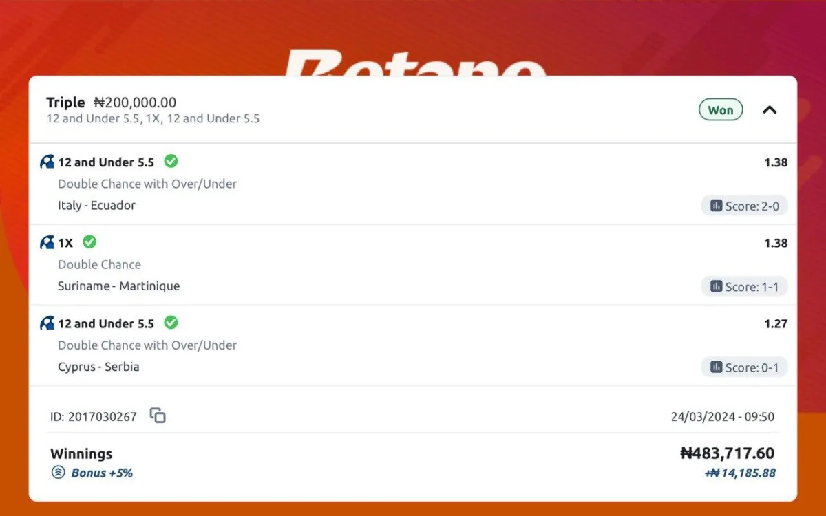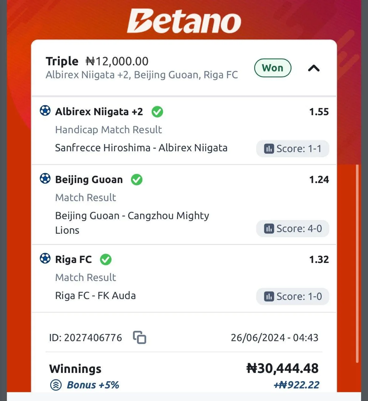 Recent Winnings from 30 Days Banker 2 Odds Challenge